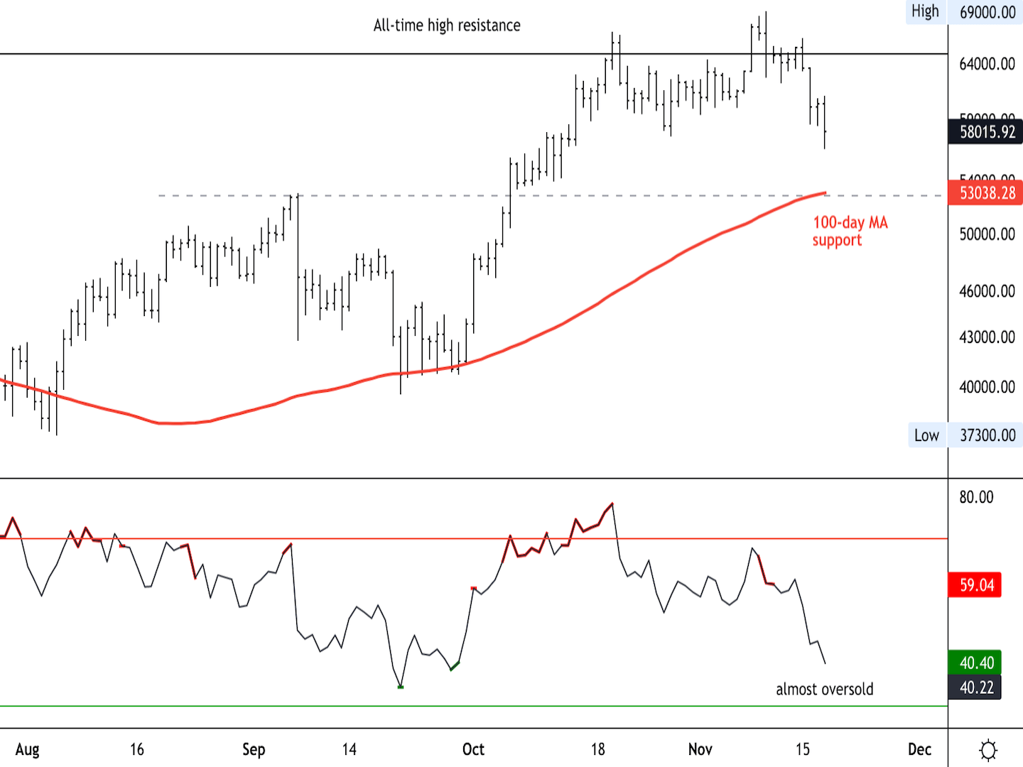 The 100-day moving average, currently around $53,000, could attract buyers similar to late September, which preceded a price recovery.