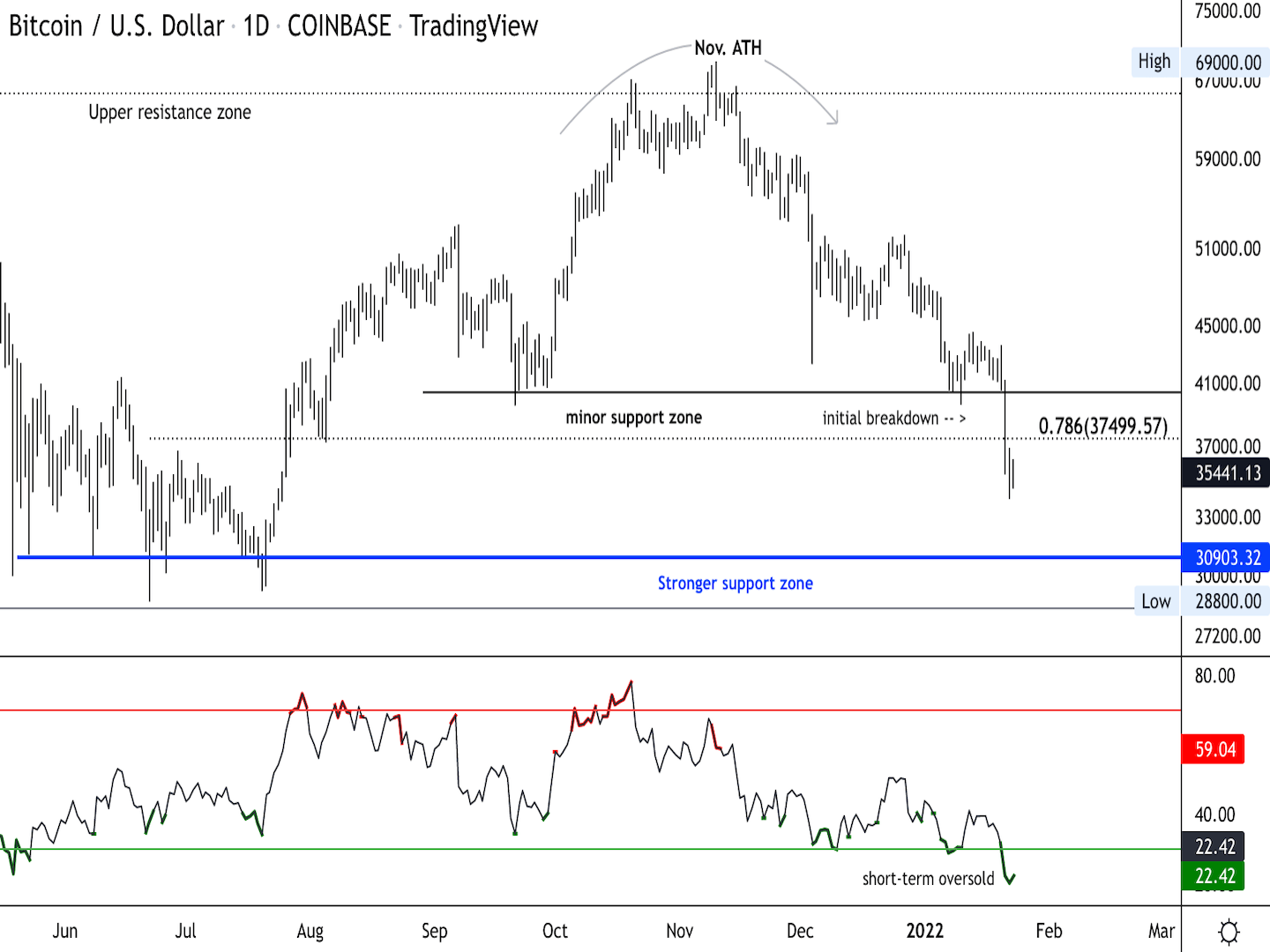 Intraday oversold signals were not enough to sustain bids, which means longer-term indicators are more reliable to determine bitcoin’s price direction.