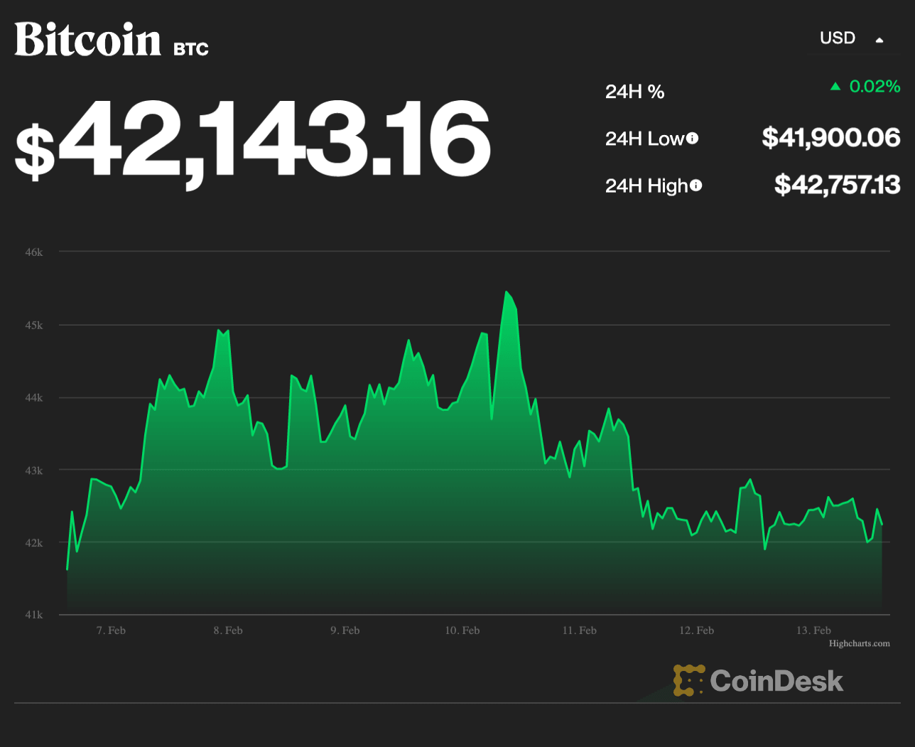 Bitcoin (BTC): $42,176 +0.1%