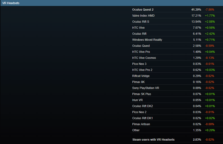 Digital gaming store Steam – a must-have for any PC gamer – says that 2% of its 132 million monthly active users have a VR headset. Of this two million, 64% are using Meta’s Oculus headsets, putting the install base at 1.28 million.