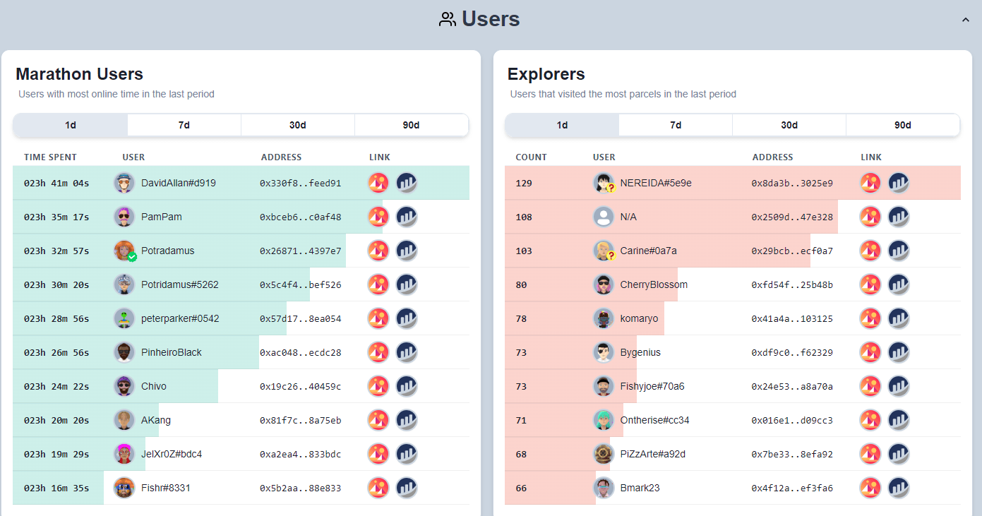 The validity of these numbers begins to dissolve once you take a closer look at them. Their data shows that there are also dozens of ‘marathon users’ that have spent the majority of the day in Decentraland.