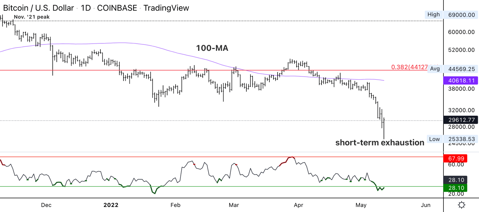 Technician's take: BTC is oversold and could see a short-term relief bounce.
