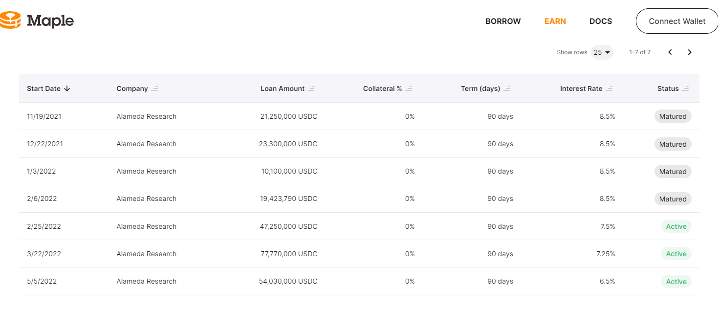 Alameda’s most recent USDC-denominated loan, which launched last week just as the Luna crisis emerged, is now offering only a 6.5% yield. When the project began last November, 8.5% was the available yield. Although there is less USDC available, Alameda is anticipating a slowdown and doesn’t have the same need for it.