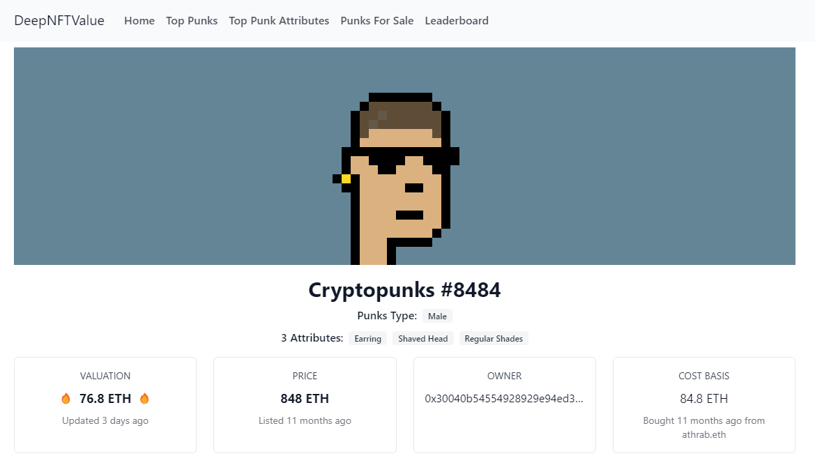 DeepNFTValue's valuation of CryptoPunk #8484 (Screenshot)