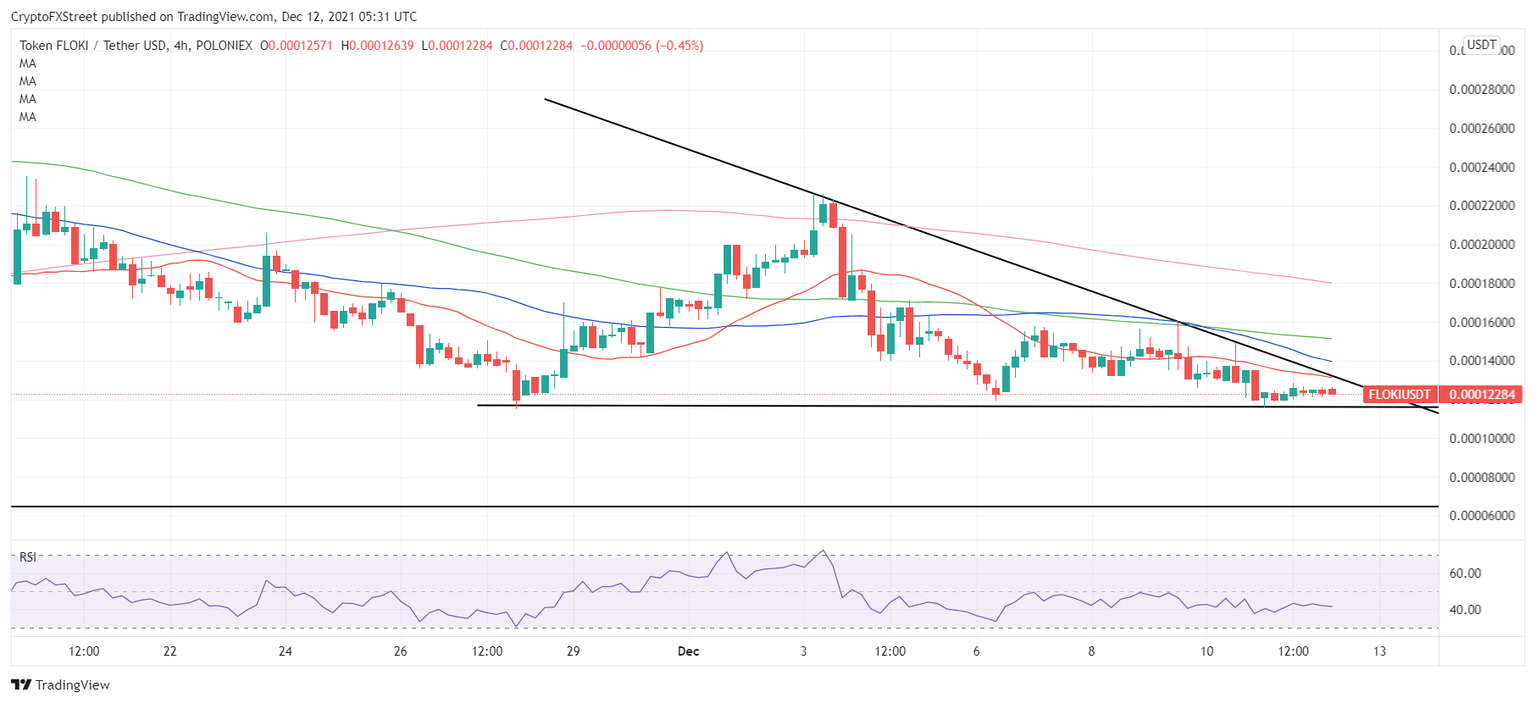 As observed on Floki Inu’s four-hour chart, FLOKI bears are poised to challenge the horizontal trendline support at $0.0001100, from where the price has bounced off on three occasions since November 28.