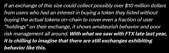 FLOKI network’s efforts to reach out to Bitget bore no fruit, but eventually, “Bitget admitted to needing up to 1 billion TokenFi tokens to meet user withdrawal requirements and fill their hole.” As this comprises 10% of the supply and is worth about $20 million at current rates, it means the exchange could have facilitated TOKEN purchase requests reaching $20 million from their users despite not having a single token in their reserves to give to these users in case they wanted to withdraw their funds. This explains why they refused to open withdrawals.