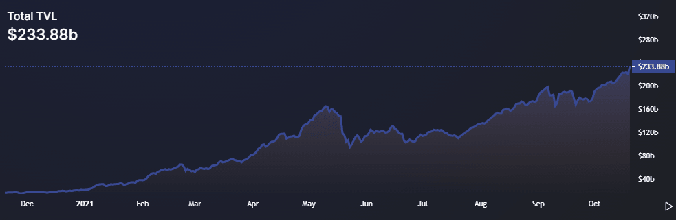 Following Bitcoin’s all-time high, DeFi TVL hits a record high above $233B