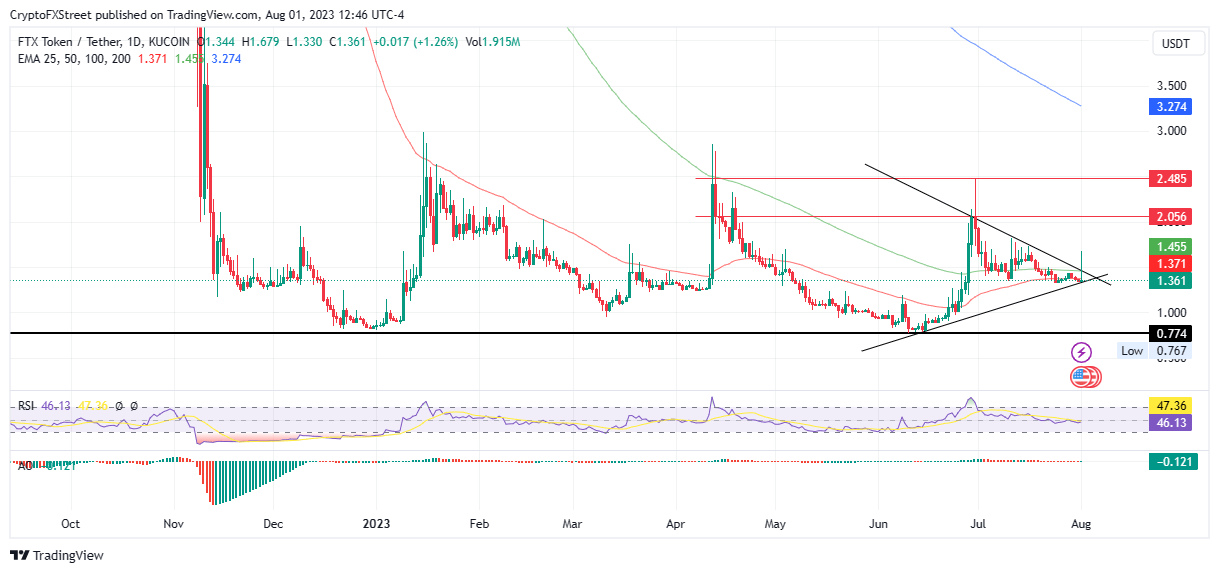 FTT price surged 25% to record an intra-day high of $1.679 on August 1. The surge constituted a 115% climb from its range low at $0.774. Nevertheless, it turned out to be premature, correcting almost immediately to the current price of $1.361, denoting an 80% whitewash of the day’s gains.