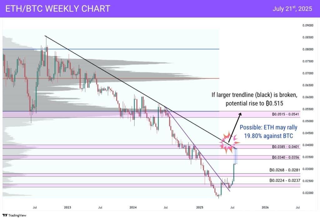 - ETH/BTC must break ₿0.0385 — confirming rotation into alts
