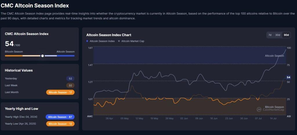 Bitcoin printed a record weekly high, Ethereum exploded over 20%, and the Altcoin Season Index just broke above 50 — a key threshold that hints alt momentum may only be getting started.