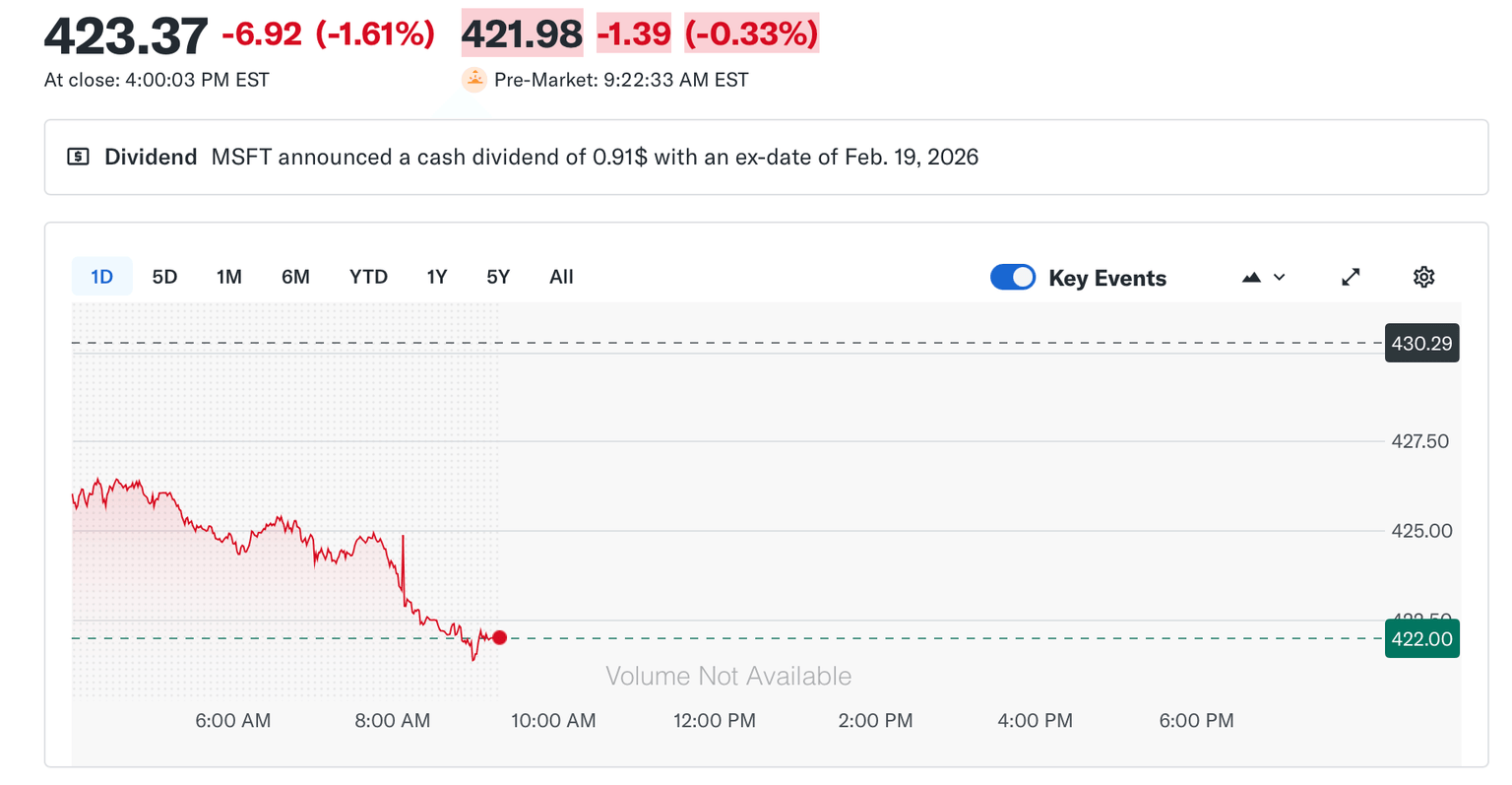 Microsoft (MSFT) posted a net return of 2.75% in the past year, trading at $423 at the time of writing. Despite the stock trading at a rather mature valuation amid extended market rotation, its AI integrations have advanced, supporting enterprise adoption. The company’s cloud computing department, Azure, expanded its revenue by leveraging its integration with OpenAI.