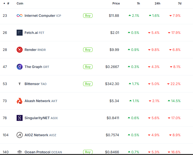 AI and big data crypto projects and tokens are bleeding, data from CoinGecko shows, with the sector bearing the brunt of a market that is devoid of directional bias. The broader altcoin community is in a disarray as traders watch for the next Bitcoin cue.