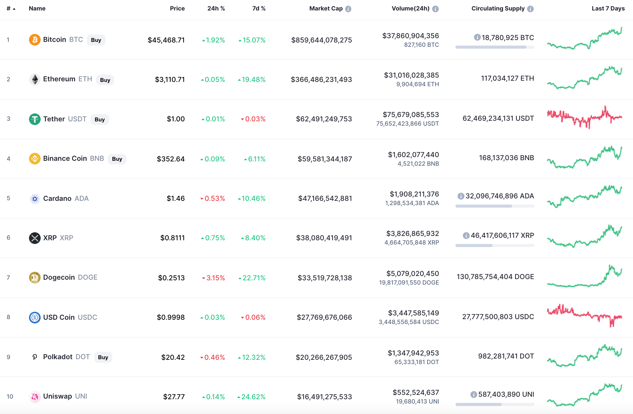 Over the past weekend, the Bitcoin (BTC) price continued to rise. It marked a monthly high at around $45,355 on Sunday morning.