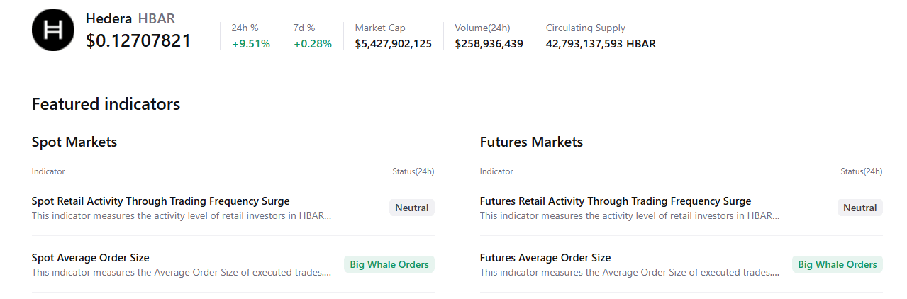 The CryptoQuant chart below supports a positive outlook, as HBAR’s spot and futures markets show large whale orders, signaling a potential rally ahead.