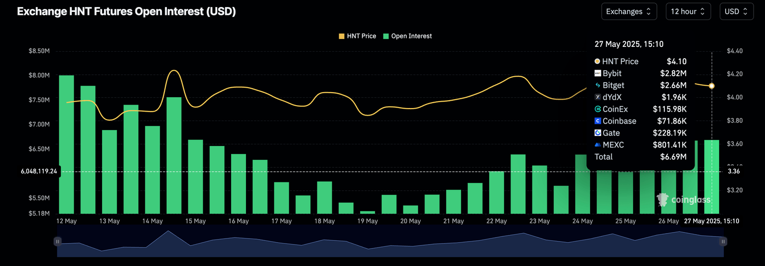 - HNT open interest recovers, reflecting increased traders’ demand in the altcoin.
