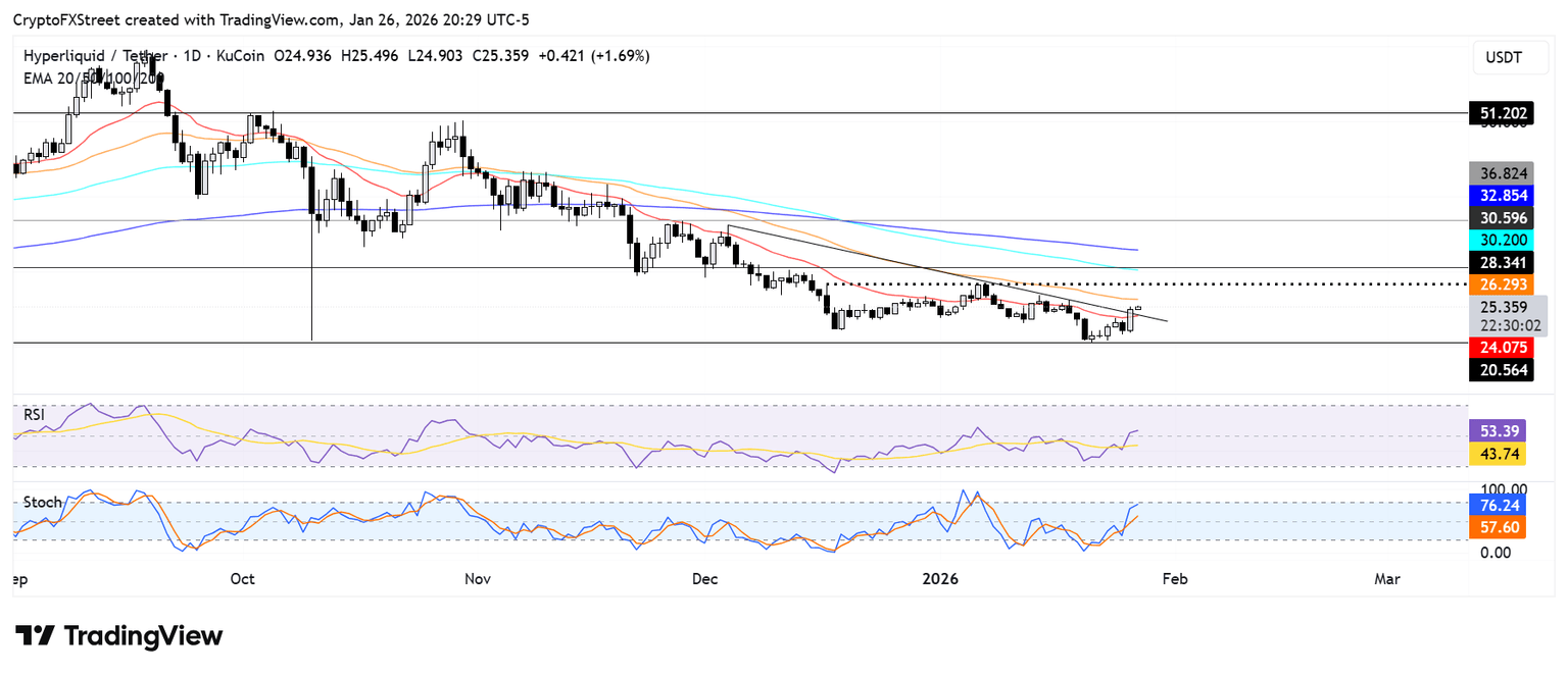 HYPE could test the resistance at $28 if it flips the 50-day EMA. However, a rejection could see it find support near the 20-day EMA.