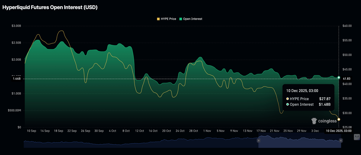 - HYPE faces a significantly subdued derivatives market with futures Open Interest averaging $1.48 billion.