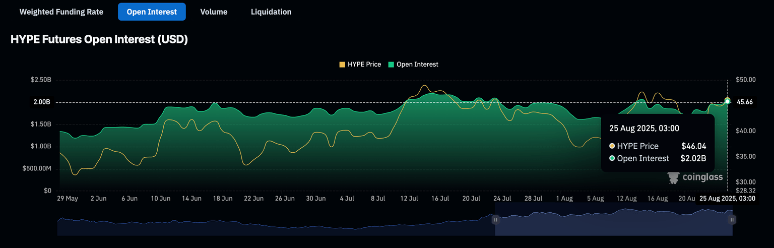 - HYPE futures Open Interest remains steady above the $2 billion mark, underscoring growing retail demand.
