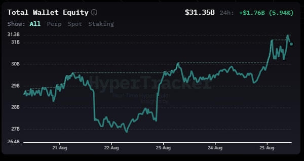 Hyperliquid total wallet equity peaks. Source: Hypertracker