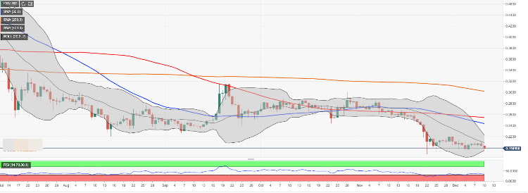 On the downside, the local support is created by the lower line of the Bollinger Band at $0.1950. It is followed by the intraday low of $0.1822 and a psychological $0.1800.
