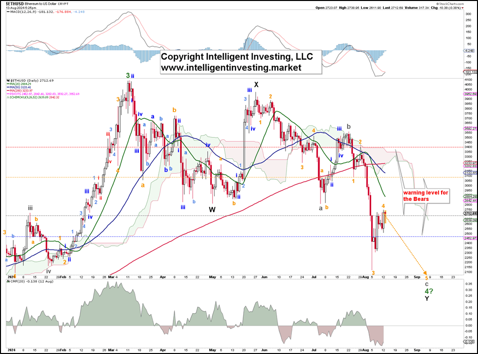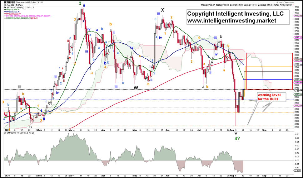 We remain long-term Bullish on this cryptocurrency, which started its Bull run towards ideally $10+/-2.5K in 2022, contingent on holding above $2150.