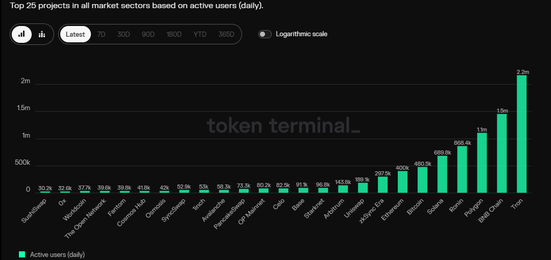 On metrics of active daily users, however, the Ethereum network does not fare so well, coming in at position seven after Bitcoin and Solana, respectively.