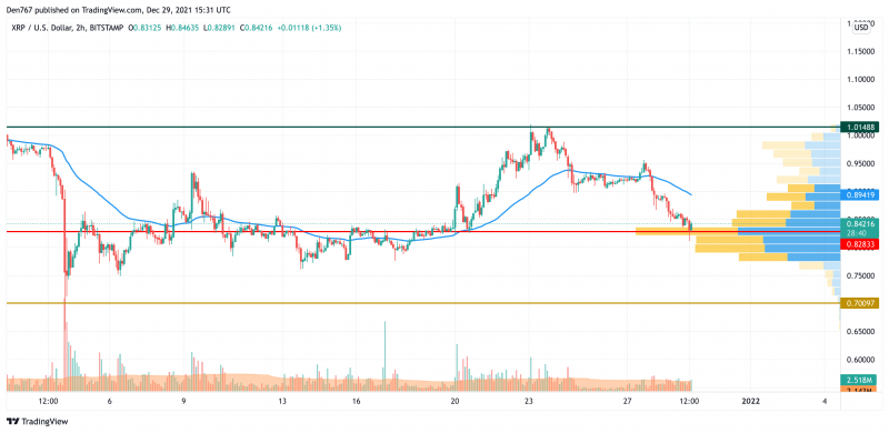 The fall stopped at night. Today, one can expect the XRP price to drop to the POC line area, and by the end of the week, the pair might reach the support of $0.80.