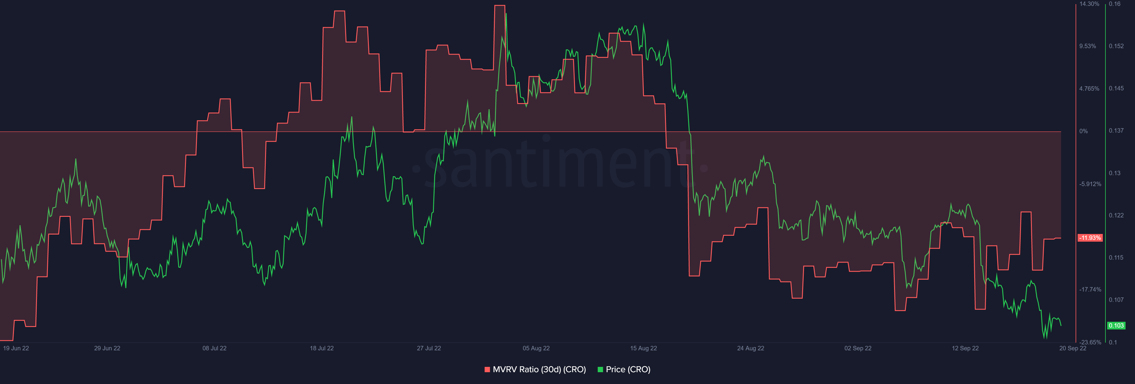 Crypto.com price seats in an optimal buy zone based on market value realized value (MVRV) data. A negative MVRV ratio shows that investors consider CRO undervalued and are likely to buy ahead of an expected bullish move. If buyers heed this call to buy CRO, recovery could begin above the primary support at $0.1000.
