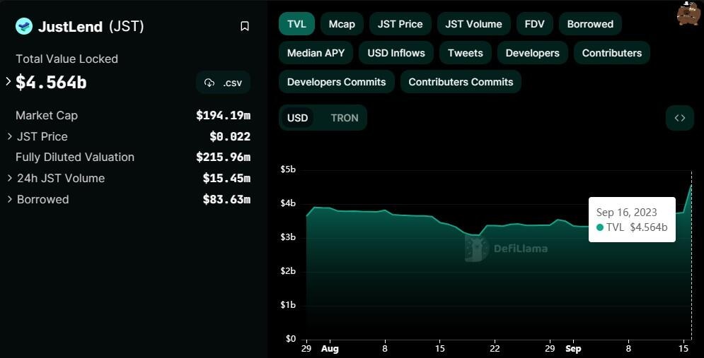The transaction catapulted JustLend TVL 21.5% north, with DeFiLlama indicating a total value locked of $4.564 billion.