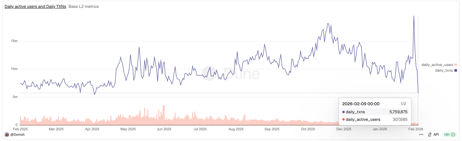 However, on-chain demand for LayerZero has dropped sharply over the same period. The Dune dashboard shows that daily transactions and active users are down to 5.75 million and 307,685, respectively, from Thursday’s peak of 19.59 million and 486,155. This is consistent with the broader market decline, as on-chain activity among top blockchain ecosystems has been adversely affected.