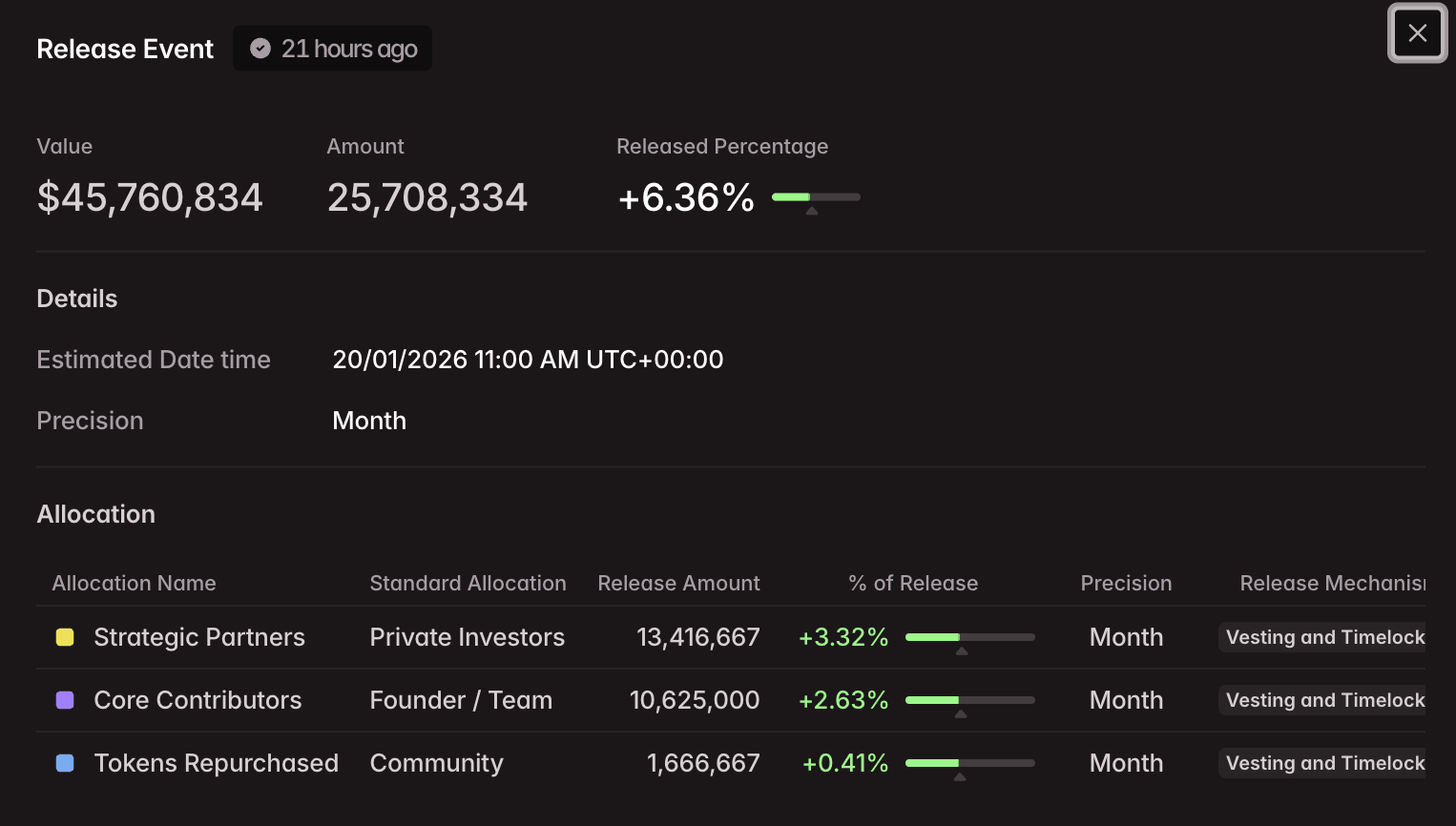 Data shows that 25.71 million ZRO tokens (6.36% of the total supply) were unlocked on Tuesday, vested mainly by private investors and the core team. Despite the surge in circulation supply, the steady recovery in ZRO confirms the presence of intense buying pressure.