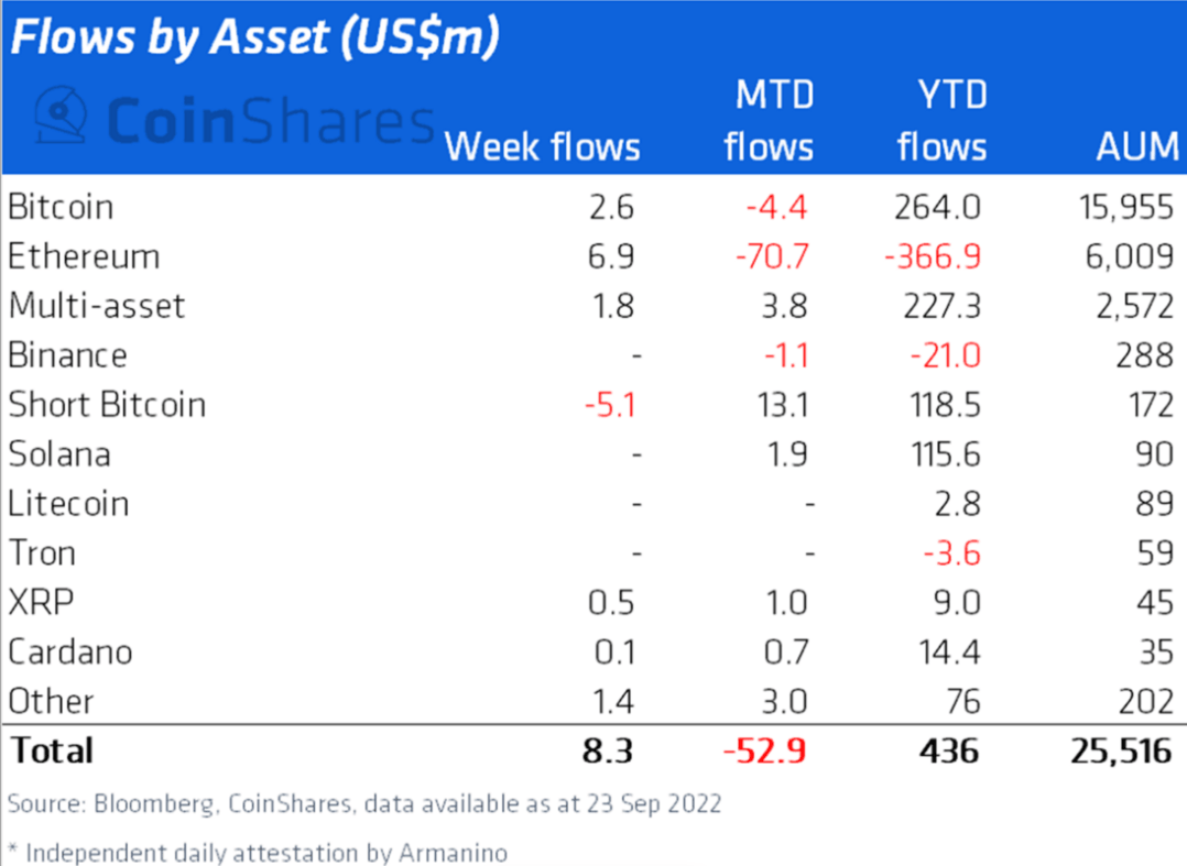 The beginning of September noted significantly higher outflows, but still remaining within the $100 million mark.