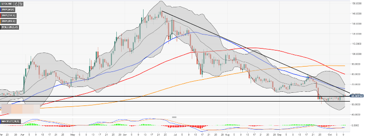 Litecoin has been moving in a narrow range, unable to realize the potential of a strong bull run on the cryptocurrency market, The 6th largest digital asset with the current market value of $3.7 billion has gained 1.2 on a day-on-day basis and lost 1% since the beginning of the day. At the time of writing, LTC/USD is changing hands at $58.41. Litecoin’s daily trading volume spiked to $2.7 billion.