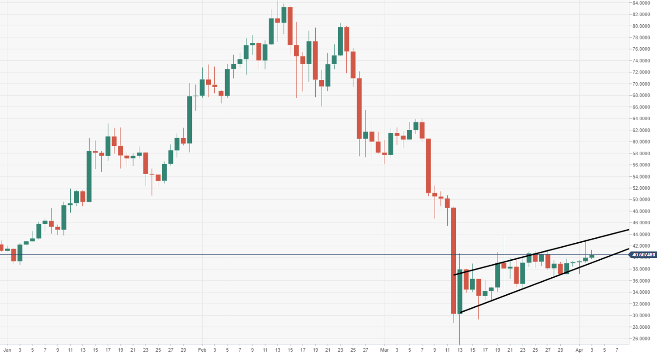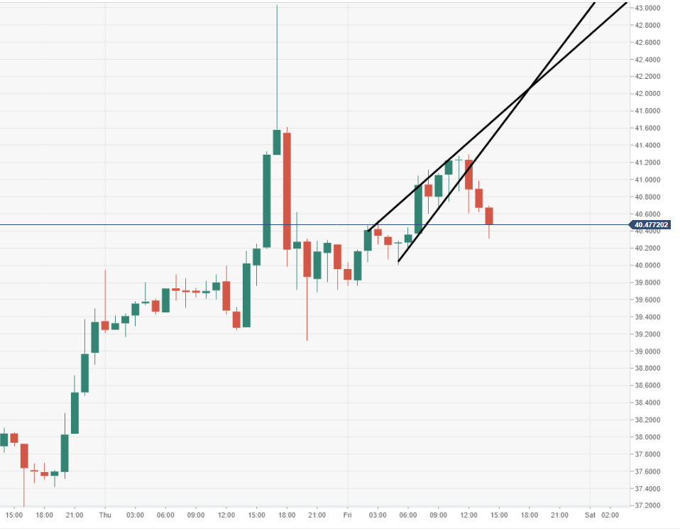 - The bulls have been gradually making attempts to break down supply within the early $40 price region.