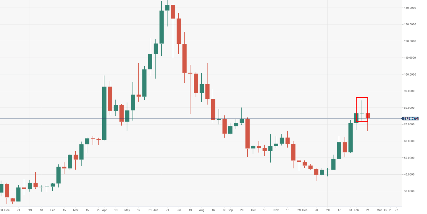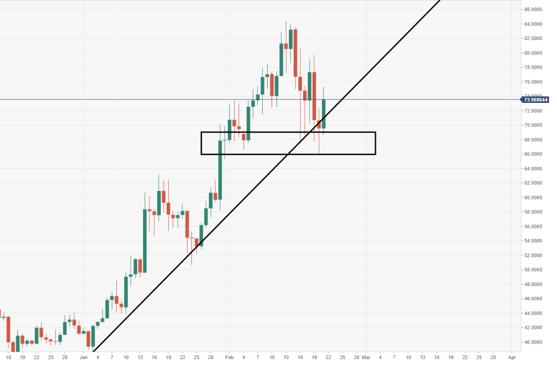Critical demand seen at the $69-66 price range, failure to hold would be punishing.