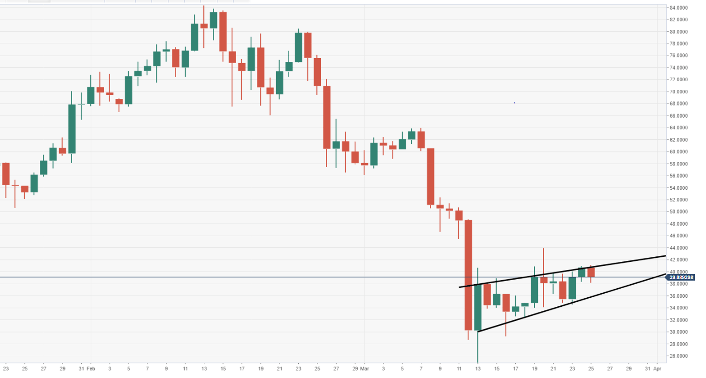 - A critical range breakout is nearing, but the price could still very much go either way.
