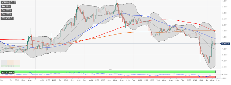 Litecoin hit the intraday low of $38.76 and recovered to the area above $40.00 by press time. LTC has been moving in sync with the broader market, driven by sentiments and technical factors. For the upside to gain traction, we will need to see a sustainable move above $41.50. This barrier is created by a combination of SMA100 (Simple Moving Average), SMA200 and the upper line of the Bollinger Band on a 1-hour chart. Once it is out of the way, the upside is likely to gain traction with the next focus on $43.00 (the highest level since December 31).