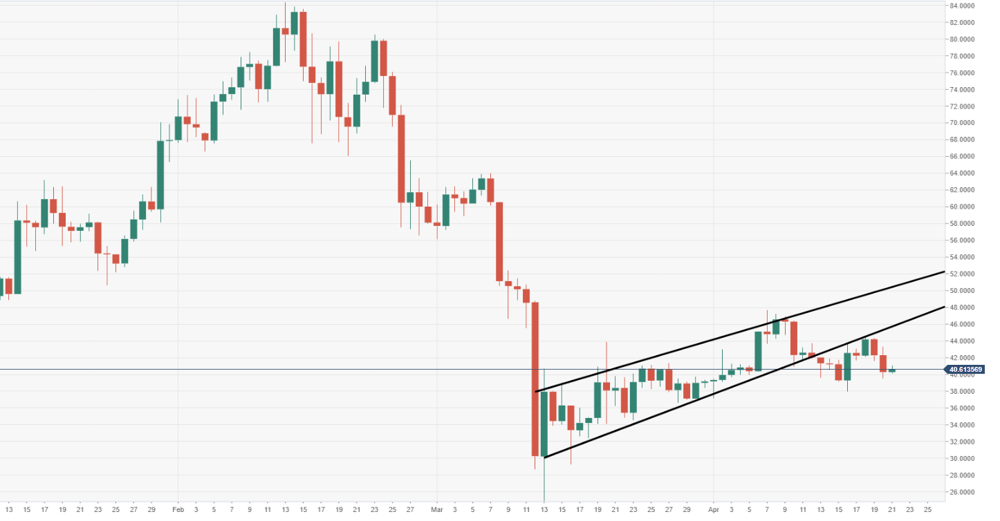 - The price breached the noted daily flag and has retested, leaving the door open to the bears.
