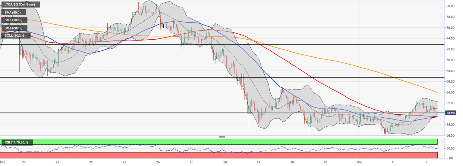 - Litecoin has settled above psychological support of $60.00.