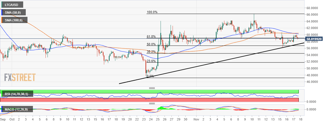 Litecoin price analysis: LTC/USD recovery stalls under $60, fails to avert the downtrend