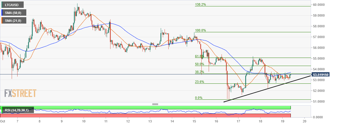 - In spite of the downtrend, Litecoin sustains a lower high pattern above a short-term ascending channel.