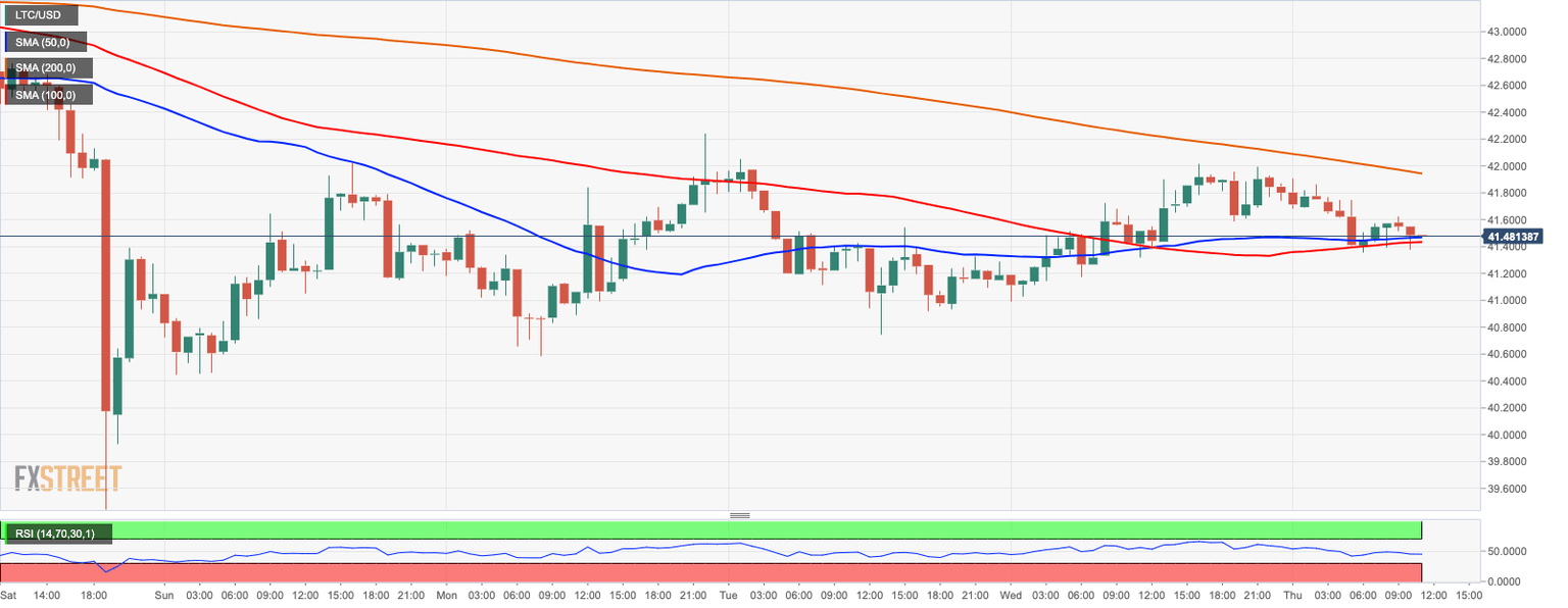 - LTC/USD failed to ground above $42.00, settled below 1-hour SMA50.
