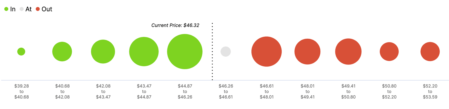 Litecoin's on-chain data shows that the coin has strong support in the area from $46.00 to 44.80, with over 3.6 million coins bough around those prices. This wall of supply has the potential to absorb the bearish pressure and push the price back towards the upside targets of $49.65 and $50.00