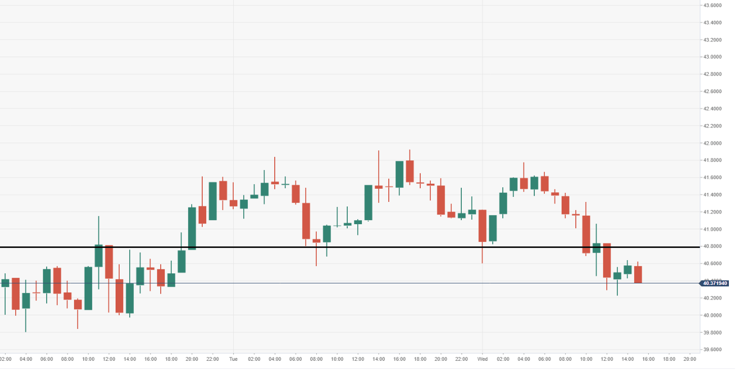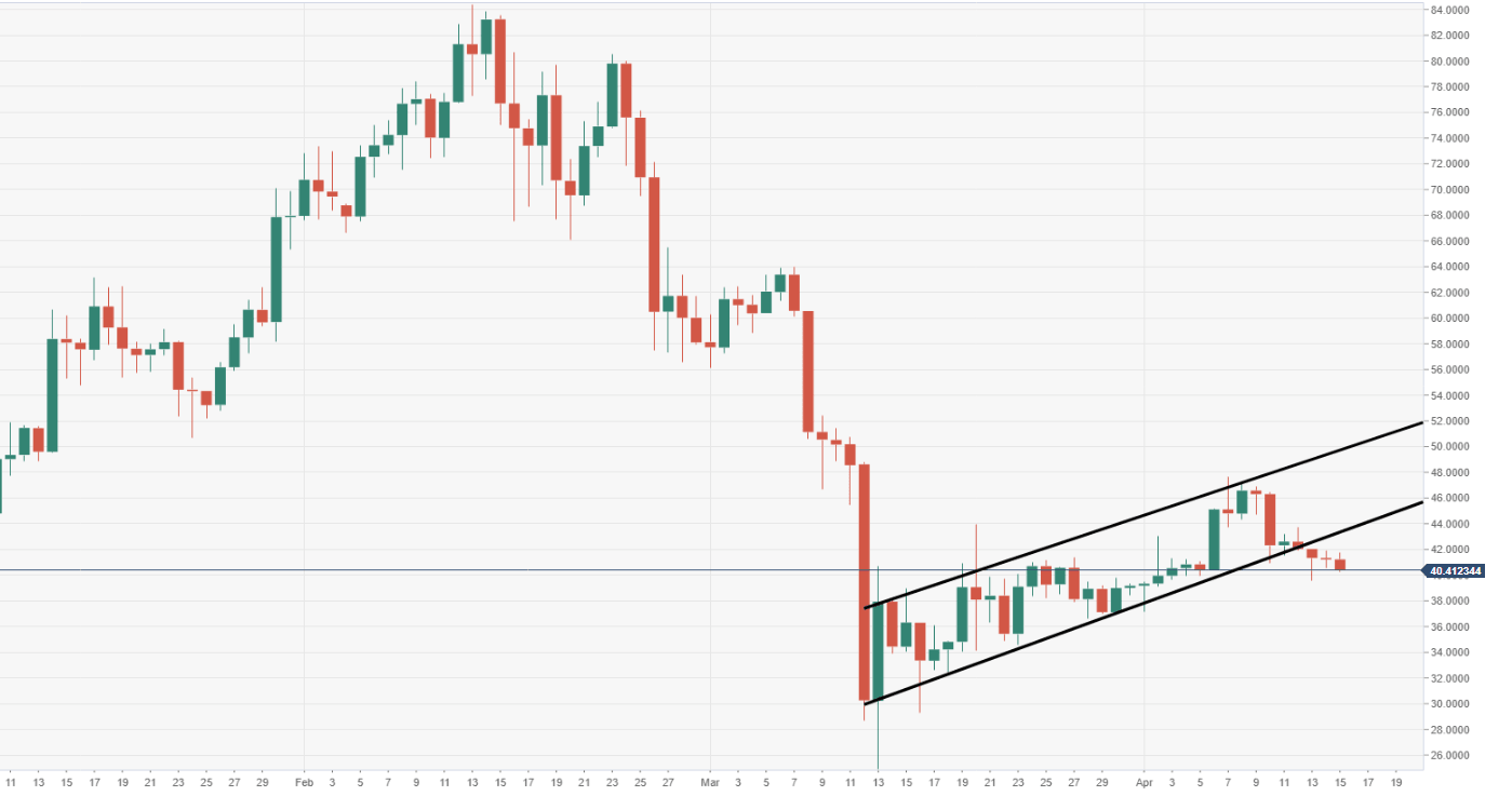 - LTC/USD is moving within a narrowing nature, sitting just above critical support at $40.