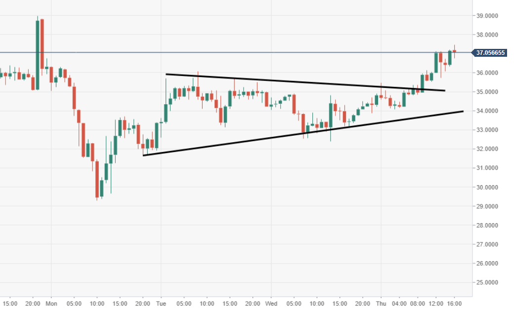 - LTC/USD has smashed out of a narrowing triangular structure via the 60-minute view.