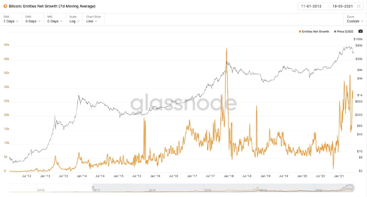 Entities net growth for Bitcoin. Source: Glassnode