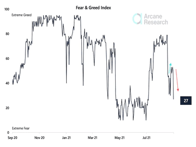 “Bitcoin lost its momentum before the greed level was hit, when another market crash happened, and the Fear and Greed Index fell right back into the fearful levels,” Arcane Research wrote in a report on Tuesday, highlighting the recent whipsaws in market sentiment.
