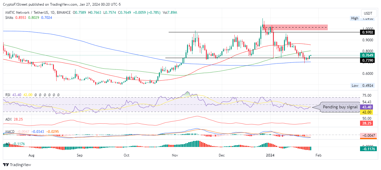 - Polygon price is nurturing an uptrend with a pending buy signal on the RSI.