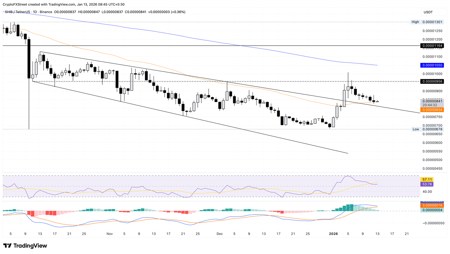 If SHIB bounces back from this moving average, it could target the October 11 low at $0.0000956.