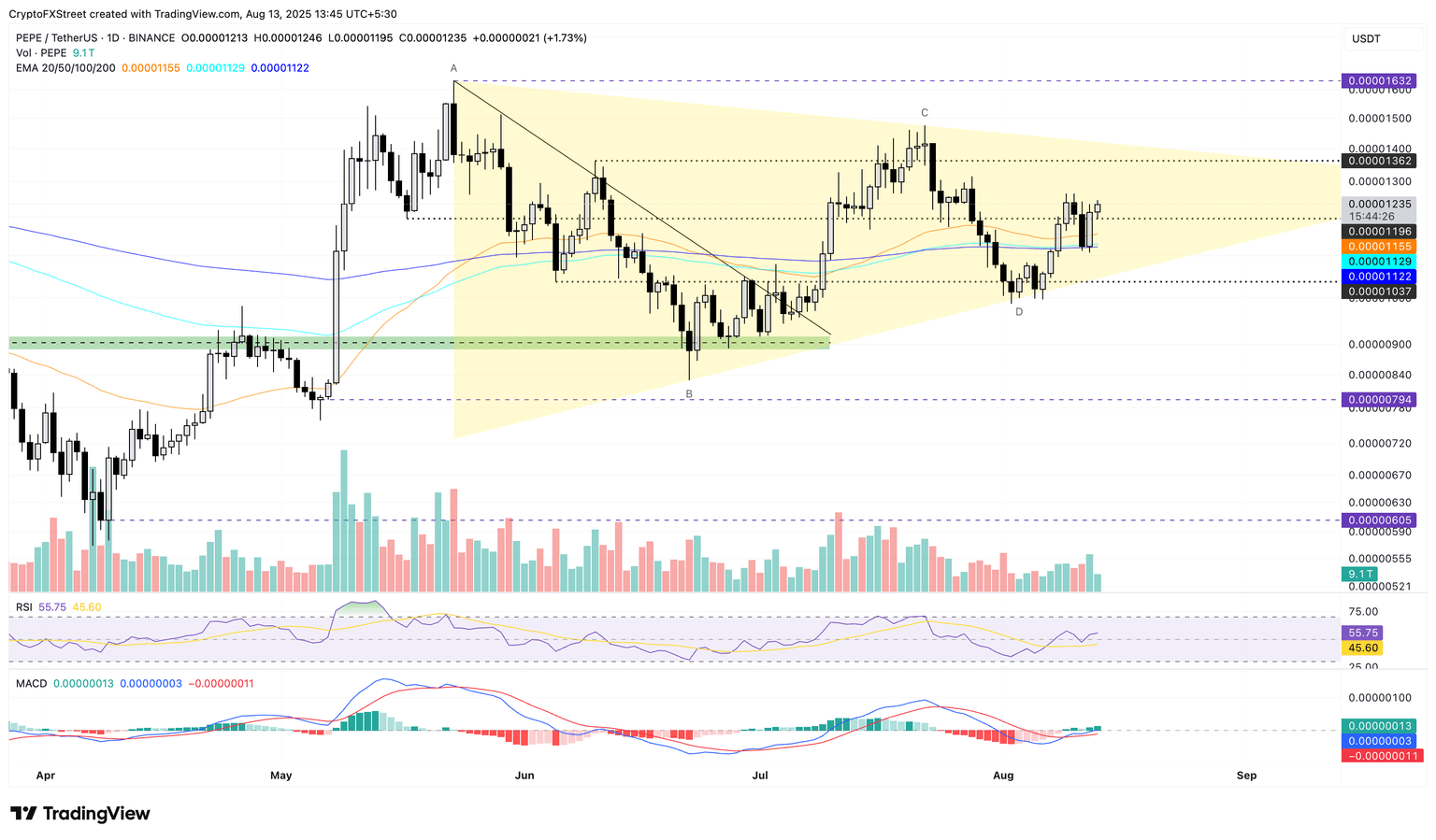 - Pepe bounces off the 200-day EMA, eyeing further recovery.